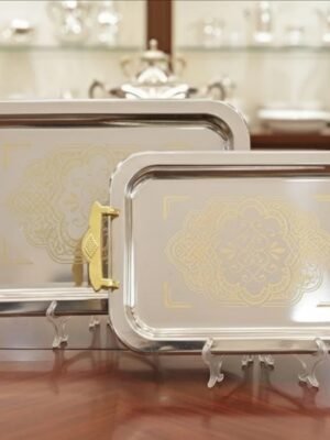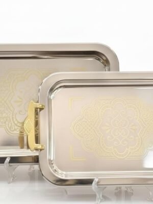 حامل حلويات ذهبي مربع