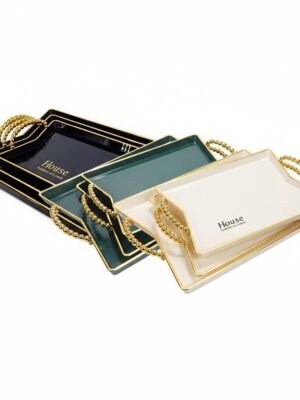 3-Piece Acrylic Serving Tray Set with Golden Handles