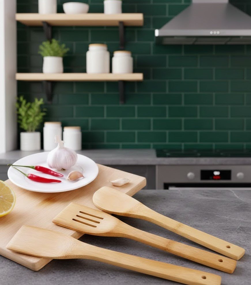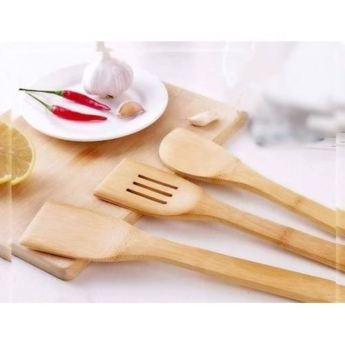 Your perfect companion for healthy cooking! A 3-piece utensil set made of high-quality natural bamboo. Completely safe for non-stick cookware (Tefal & Granite) and highly durable against high temperatures.
