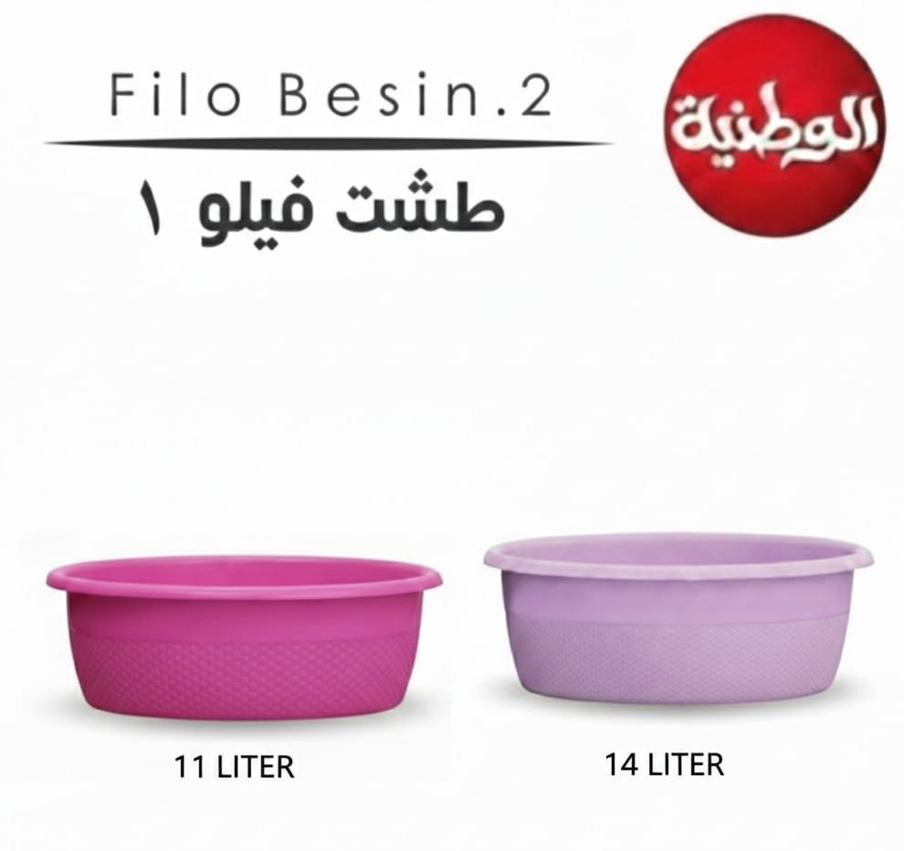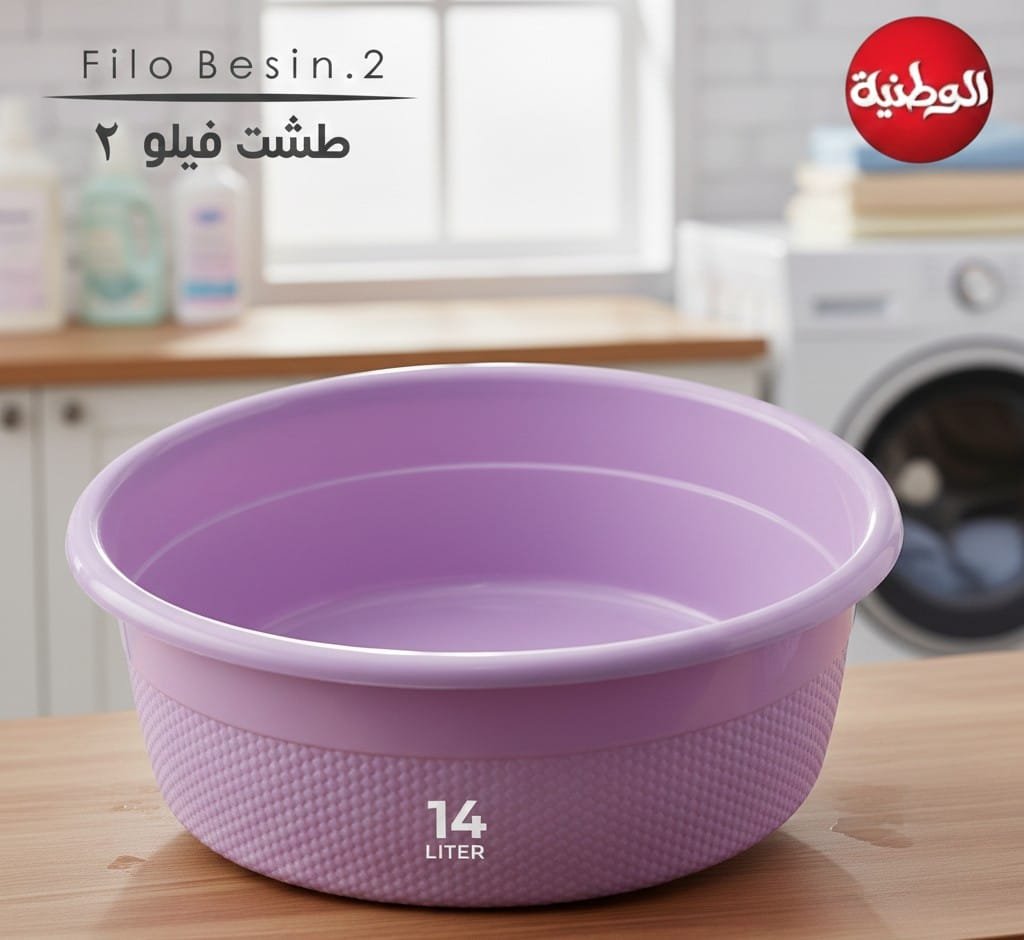 Al Wataniya durable “Filo Besin” plastic washbasin for laundry and various household uses. Available in two practical sizes: 11 liters and 14 liters, to meet all your daily needs efficiently