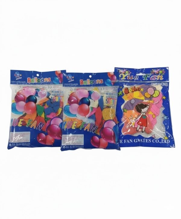 - English: High-quality balloons in vibrant colors, available in three sizes (25, 50, and 100 pieces) to suit all your celebrations. Durable, long-lasting, and perfect for any event.
