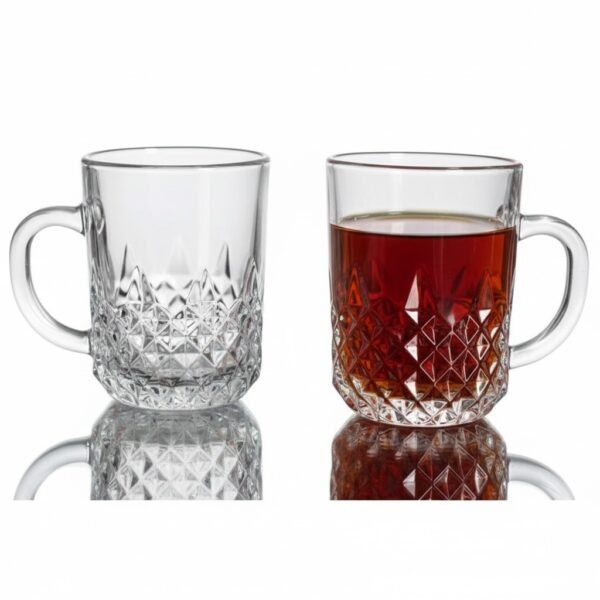 Upgrade your drinkware with the luxurious Blinkmax mug set of 6 pieces. Crafted from high-quality, pure glass, it features an elegant, diamond-cut design that adds a modern and sophisticated touch to any occasion. Perfect for serving tea, coffee, or any other hot and cold beverages. Durable, safe for daily use, and dishwasher safe.