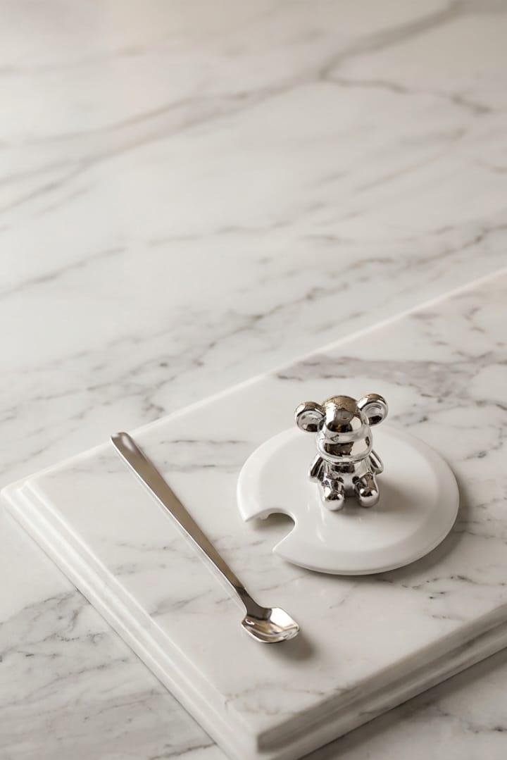 - Iconic Chrome Bear Lid: Features a sleek white lid topped with a glossy silver teddy bear figurine, designed to keep your beverage warm and your style on point.