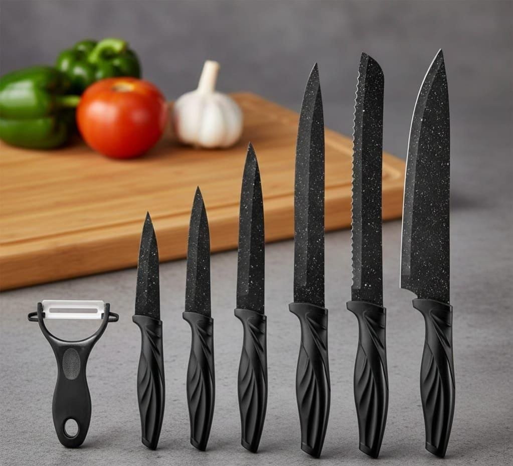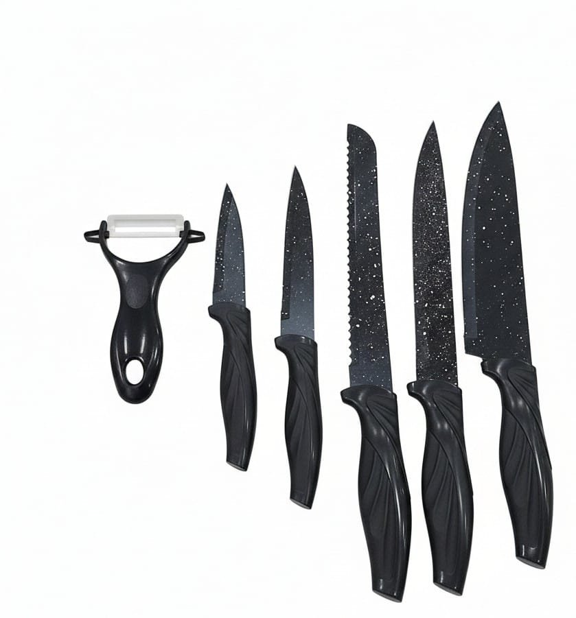 Elevate your kitchen experience with the “Granite ” 6-piece knife set. It features sharp, durable stainless-steel blades with a stylish granite look exterior coating, ensuring high efficiency and rust resistance. The ergonomic handles guarantee safe and comfortable use for all daily kitchen tasks, from slicing to peeling.
