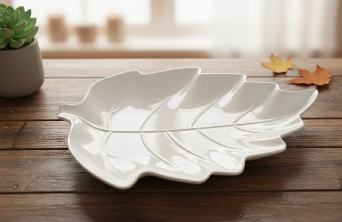 Elegant Heat-Resistant Porcelain Leaf-Shaped Serving Platter