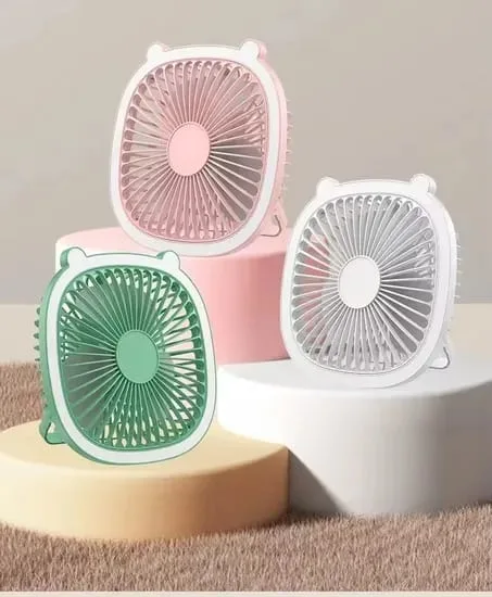 This portable fan is the perfect accessory for your desk, bedside table, or travel, combining a delightful design with practical performance. Crafted from durable plastic and lightweight, it is easy to carry in your bag wherever you go.