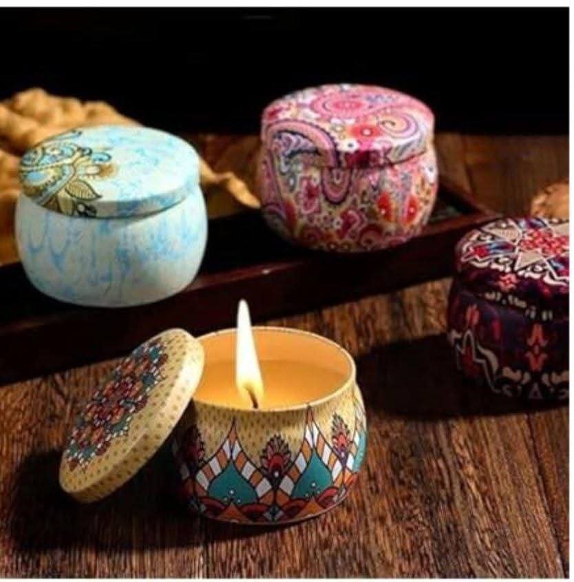 Refresh the ambiance of your home or workspace with this elegant single scented candle. Crafted from 100% pure natural soy wax and a cotton wick, it ensures a clean, eco-friendly burn with a long-lasting time . It comes in a durable, lightweight tin jar adorned with a vibrant and attractive mandala pattern, which can be reused later for storing small trinkets. The captivating and refreshing fragrance (like soothing lavender) fills the room with an aroma that helps relieve stress and promotes calm and relaxation during meditation sessions or reading time. this candle is a perfect addition to your decor or a thoughtful small gift for a loved one.