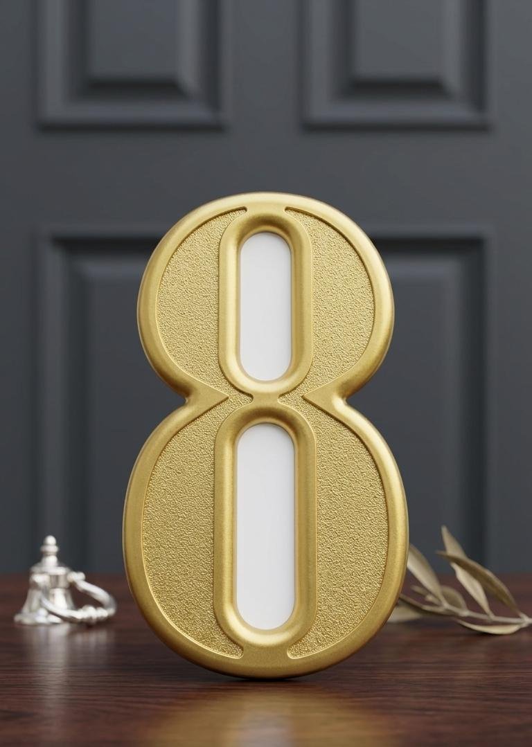 أضف طابعاً من الرقي والوضوح على مدخلك مع هذه الأرقام الذهبية الفاخرة. صُممت هذه الأرقام لتكون بارزة وجذابة، مما يسهل التعرف على عنوانك من مسافة بعيدة بفضل حجمها المثالي ولونها الذهبي اللامع.