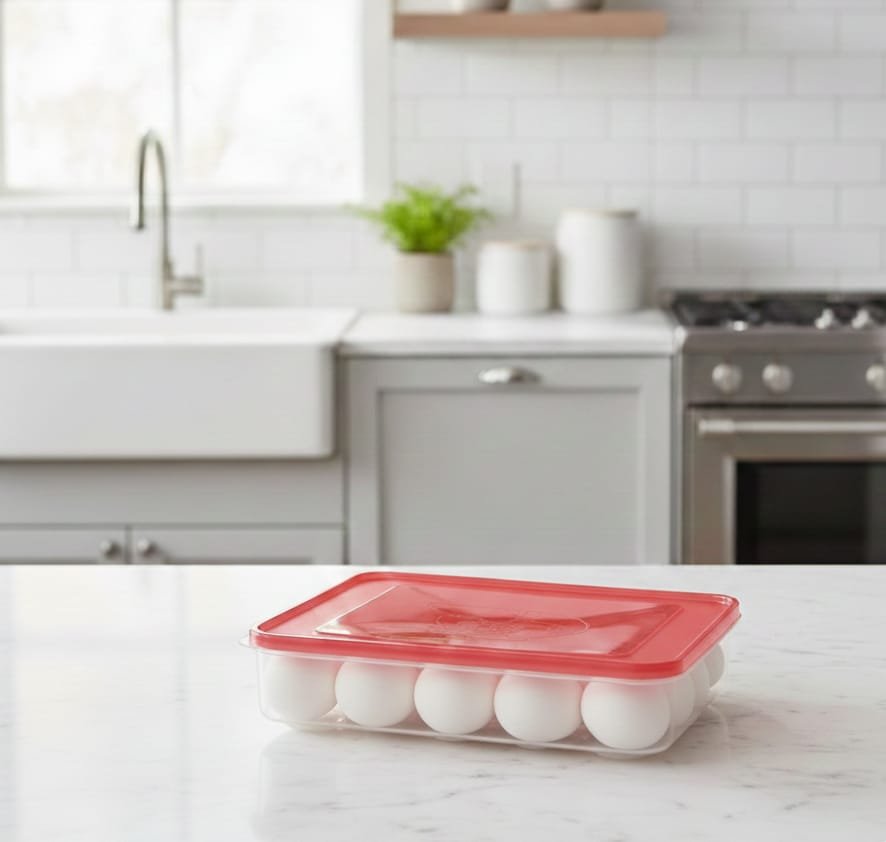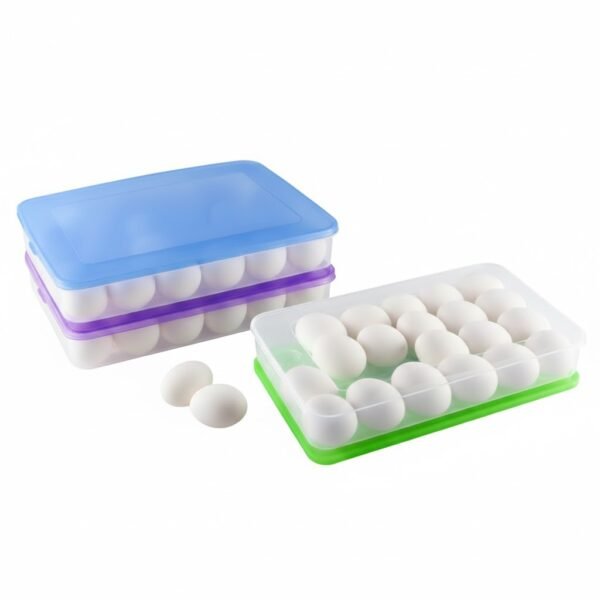 حافظي على بيضك طازجاً ومنظماً بأمان مع هذه العلبة العملية ذات السعة الكبيرة لـ 24 بيضة. تتميز بتصميم شفاف وغطاء محكم الإغلاق يمنع الكسر ويوفر المساحة في الثلاجة.