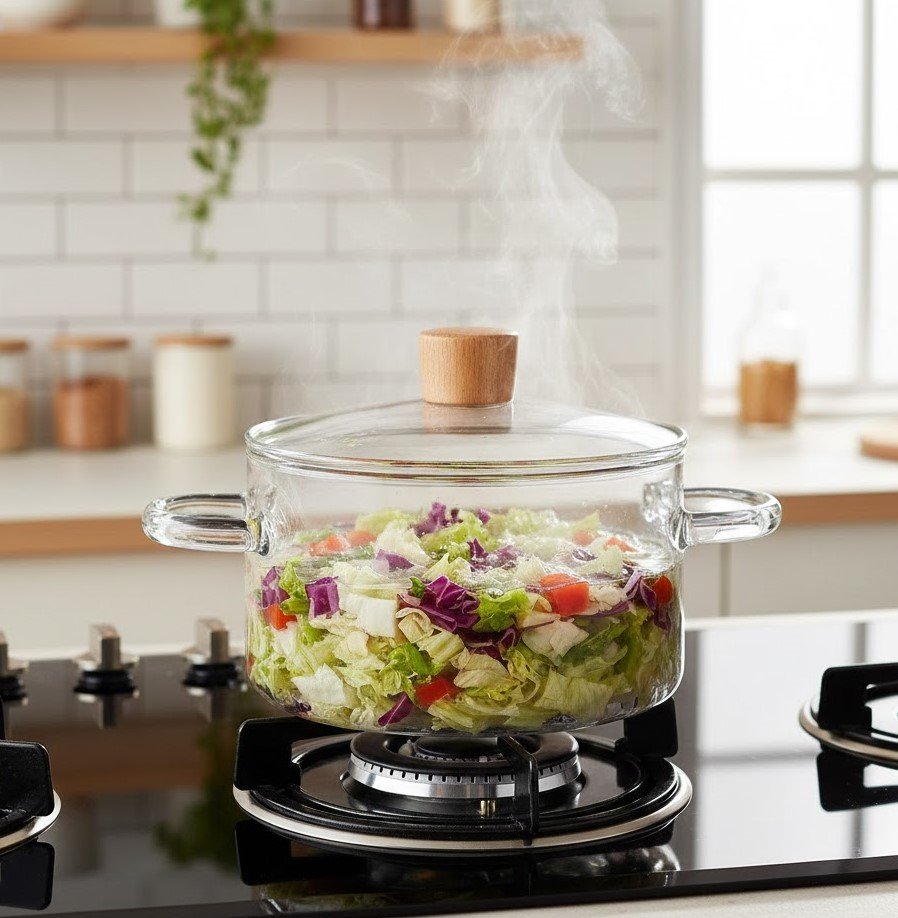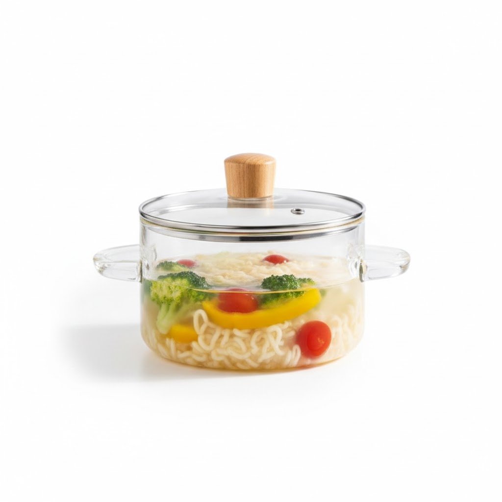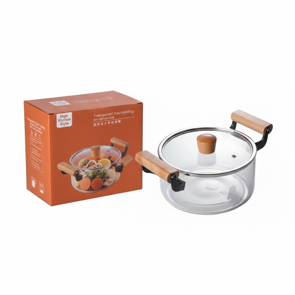 يتميز التصميم بشفافية عالية تتيح لك مراقبة عملية الطهي دون الحاجة لرفع الغطاء، مما يحافظ على النكهات والرطوبة. المقابض الجانبية للوعاء والمقبض الموجود على الغطاء مصنوعان من الخشب الطبيعي، مما يوفر قبضة مريحة وآمنة ويضيف لمسة جمالية دافئة. هذه الحلة سهلة التنظيف، صحية، ولا تمتص الروائح أو البقع، وتعتبر قطعة ديكور مميزة في مطبخك أو على سفرتك.