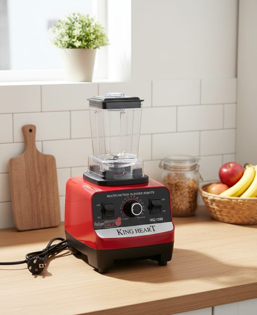 قوة وأداء في جهاز واحد! خلاط KING HEART متعدد الوظائف هو رفيقك المثالي لتحضير كل شيء من العصائر الطازجة والسموذي إلى جرش الثلج وطحن المكونات الصلبة. يتميز بوعاء كبير سعة 2 لتر وكبة إضافية لفرم اللحوم والخضروات والتوابل بسهولة. بفضل محركه القوي وشفراته المصنوعة من الفولاذ المقاوم للصدأ، ستحصل على نتائج مثالية وسريعة في كل مرة.