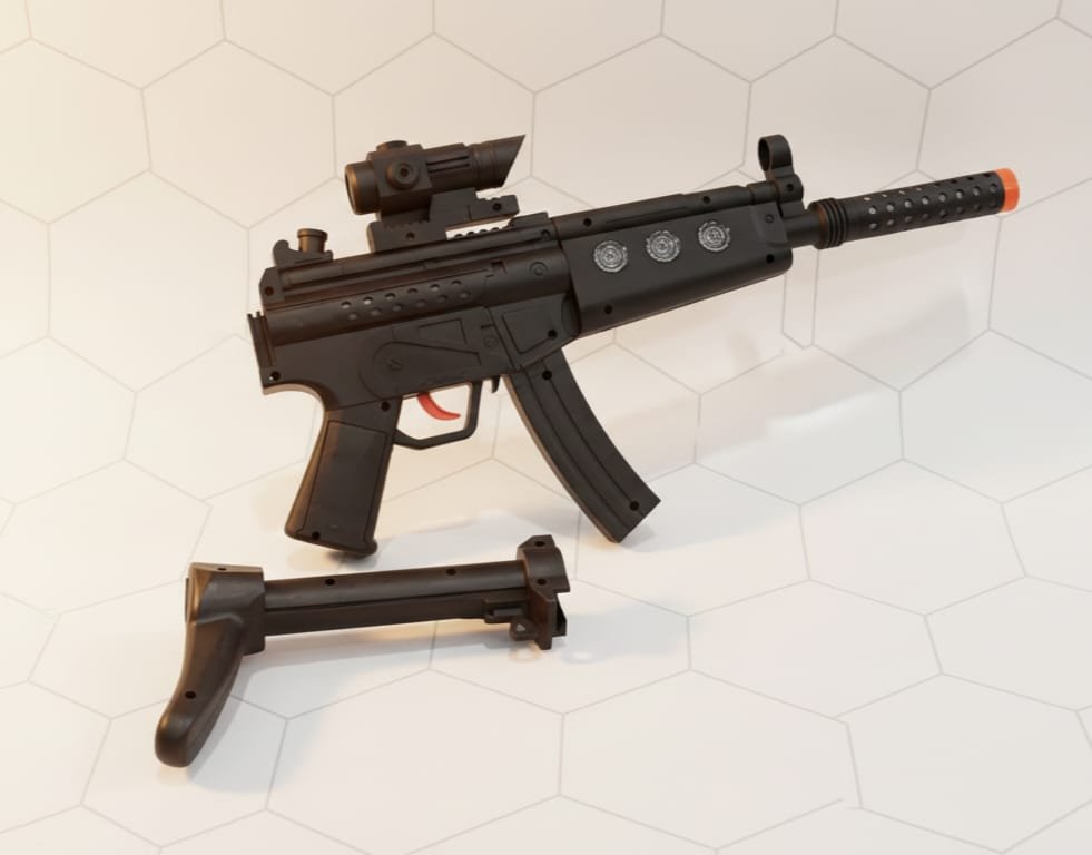 - أصوات طلقات نارية واقعية: تصدر البندقية أصوات إطلاق نار ديناميكية ومحركات لجعل المعارك الوهمية تنبض بالحياة.