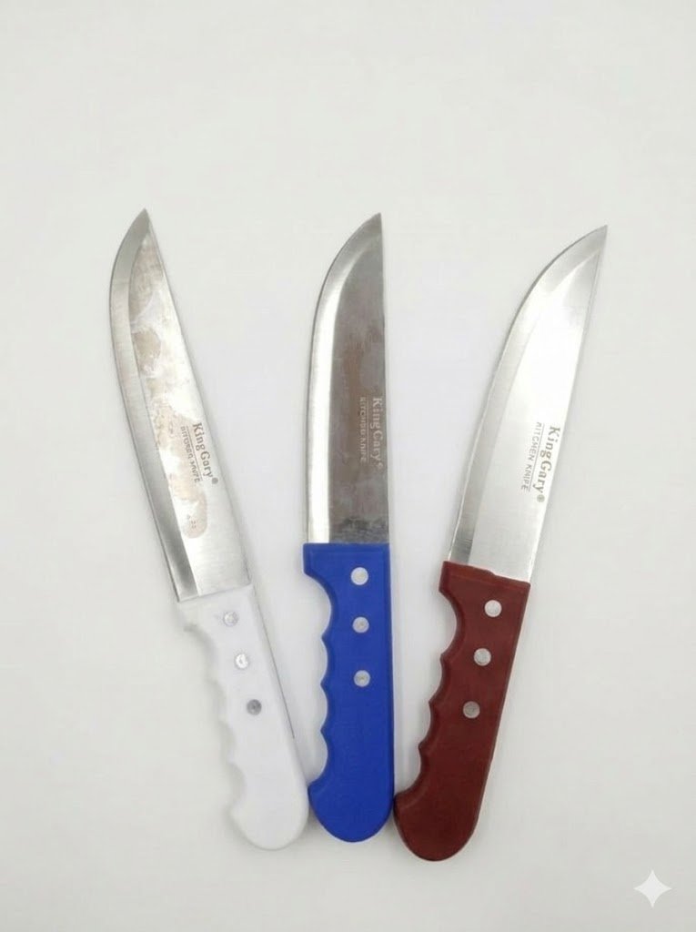 سكينة يد متعددة الألوان بتصميم عملي ومريح في الاستخدام، متوفرة بـ 3 مقاسات (6 بوصة – 7 بوصة – 8 بوصة) لتناسب جميع احتياجات المطبخ. شفرة حادة من الستانلس ستيل تضمن تقطيع دقيق وسريع، مع يد مريحة مانعة للانزلاق لثبات وأمان أكبر أثناء الاستخدام. مثالية لتقطيع اللحوم، الخضروات والفواكه بكل سهولة.