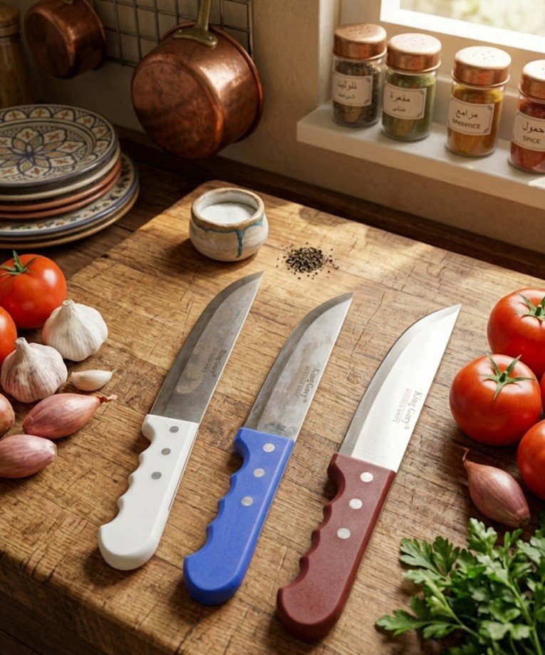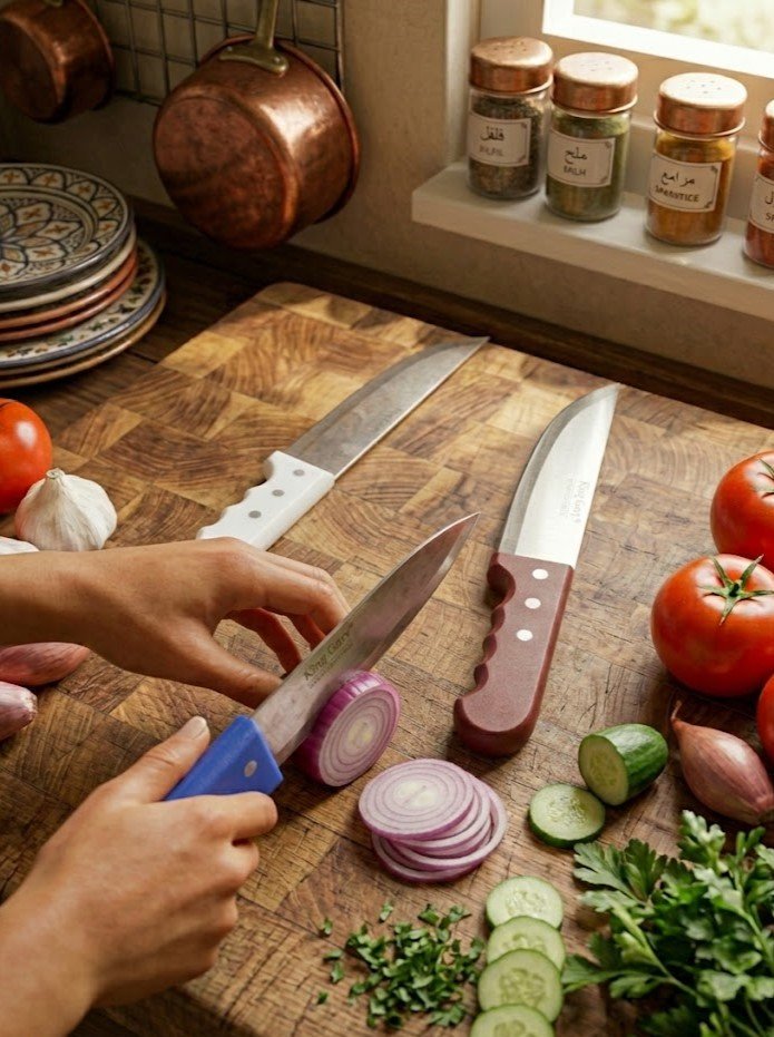 احصل على تجربة تقطيع احترافية داخل مطبخك مع سكينة اليد متعددة الألوان، المصممة لتجمع بين الجودة، العملية، والراحة في الاستخدام. تأتي السكينة بثلاثة مقاسات مختلفة (6 بوصة – 7 بوصة – 8 بوصة) لتناسب جميع الاستخدامات، سواء للتقطيع اليومي السريع أو للتحضير المكثف للوجبات.