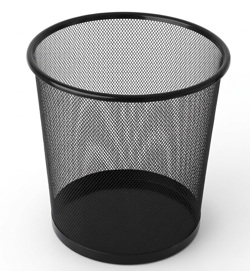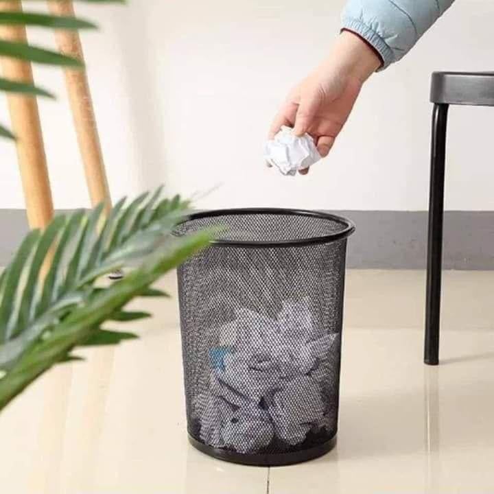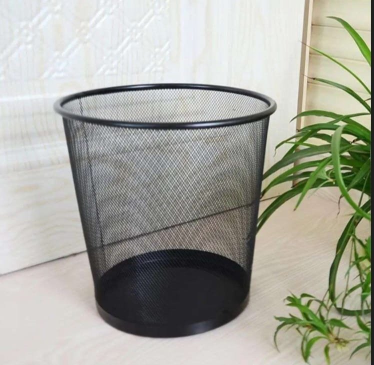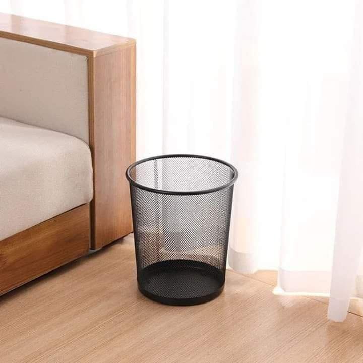 سلة مهملات معدنية شبكية بتصميم عصري وأنيق باللون الأسود. تتميز بمتانة عالية ووزن خفيف، مما يجعلها الخيار الأمثل للمكاتب، الغرف، والمطابخ للحفاظ على النظافة بلمسة ديكور بسيطة.