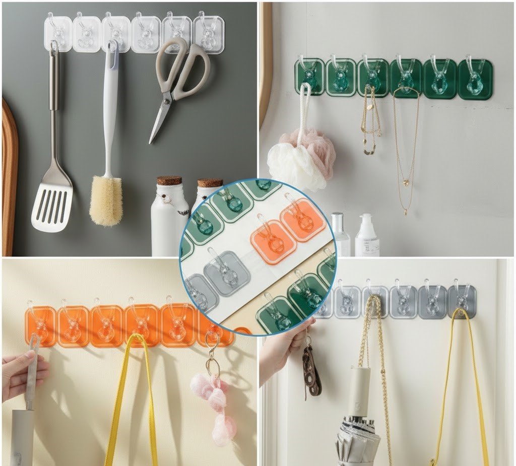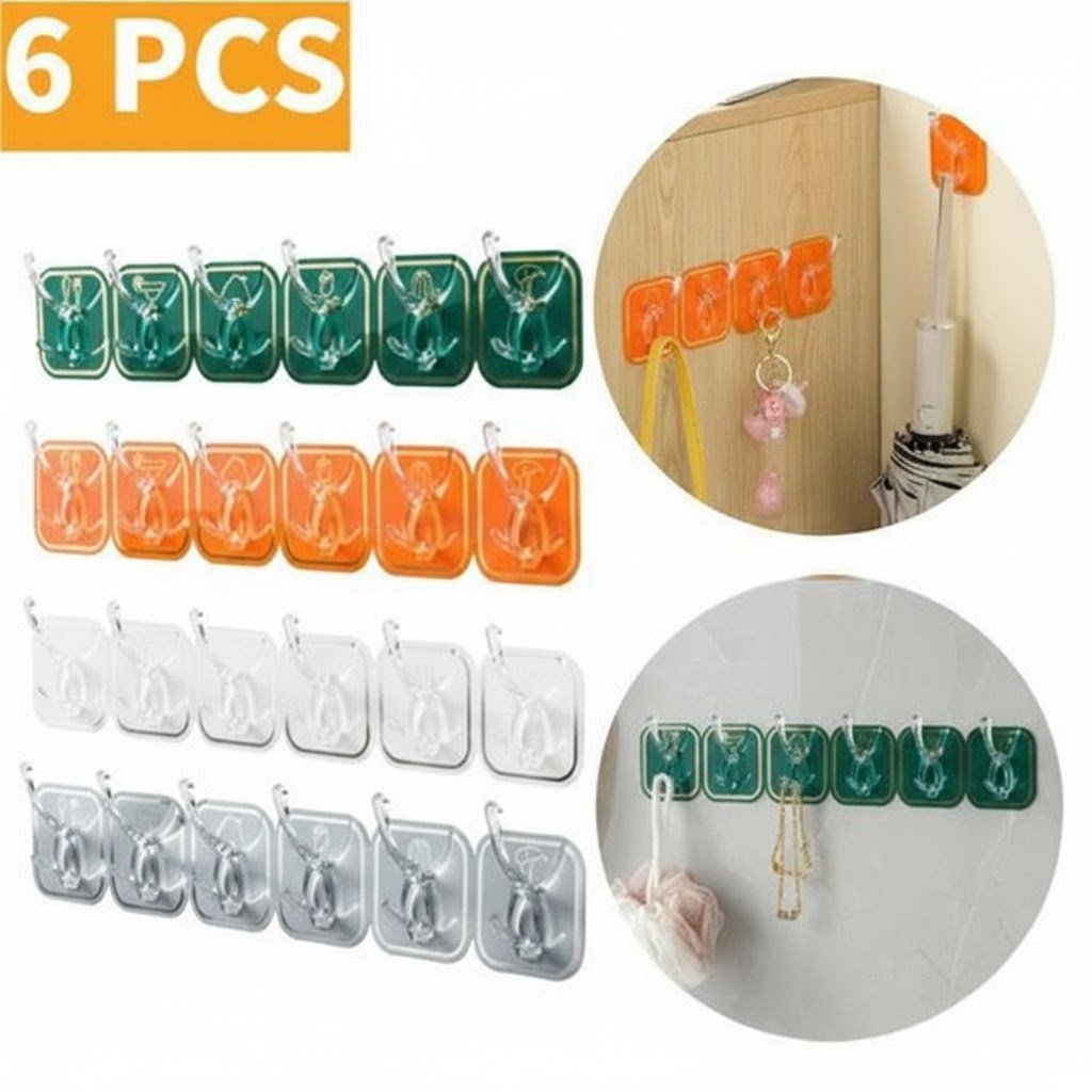 - قوة تحمل فائقة: بفضل اللاصق الشفاف الفعال، يمكن لهذه الخطافات تحمل أوزان ثقيلة لضمان دعم موثوق لممتلكاتك.