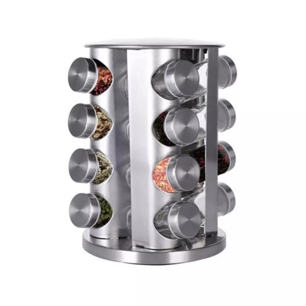 ارتقِ بتنظيم مطبخك مع طقم التوابل الفاخر هذا المكون من 16 قطعة. يتميز ببرطمانات زجاجية شفافة بأغطية من الستانلس ستيل عالية الجودة، ومزود بحامل دوار 360 درجة لسهولة الوصول والتخزين الموفر للمساحة.