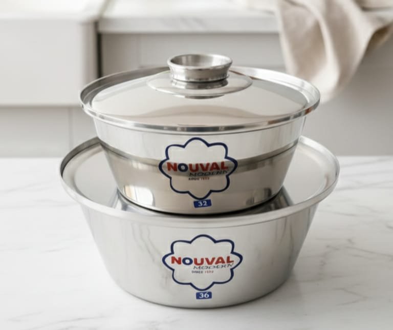 نقدم لكم طقم حلل الشاورما الألومنيوم مودرن من نوفال المتميز، المصمم لتلبية كافة احتياجات الطهي الاحترافية والمنزلية بكفاءة عالية. مصنوع من الألومنيوم النقي 100% لضمان توزيع حرارة ممتاز ومتساوي، مما يجعله مثاليًا لتحضير الشاورما والعديد من الأطباق الأخرى.
