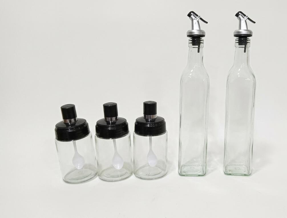نظّم مطبخك بأناقة مع طقم الزياتة والتوابل الزجاجي المكون من 5 قطع