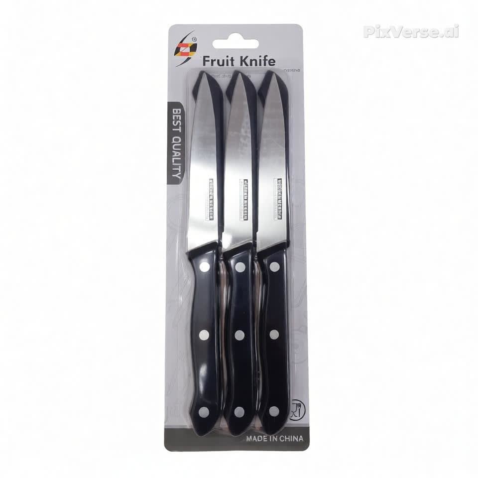ارتقِ بتجربة الطهي الخاصة بك مع طقم السكاكين المكون من 6 قطع، المصمم للجمع بين الكفاءة والراحة. تتميز هذه السكاكين بنصل حاد من الفولاذ المقاوم للصدأ بطول إجمالي 23 سم، مما يجعلها مثالية لمهام التقطيع اليومية، من الخضروات إلى اللحوم. تأتي السكاكين بمقابض سوداء متينة ومثبتة بمسامير لضمان أقصى درجات الثبات والتحكم أثناء الاستخدام. الطقم مقدم على كارت عرض أنيق، مما يجعله إضافة مثالية لمطبخك أو كهدية عملية.