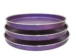 هذا الطقم المكون من 3 صواني بأحجام مختلفة هو إضافة قيمة لمطبخك. تتميز بتصميم دائري مثالي لخبز البيتزا اللذيذة بقاعدة مقرمشة، أو تحضير طبق بسبوسة شهي.
