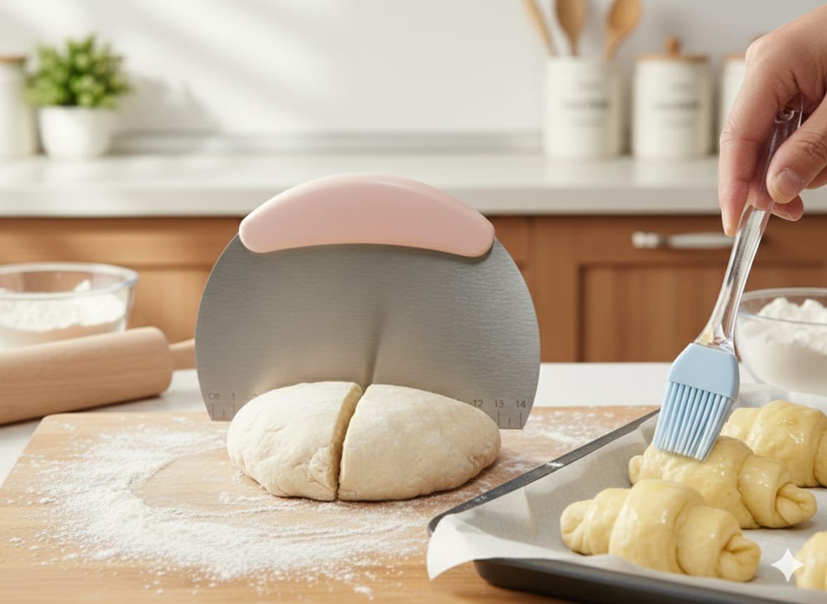 - قطاعة حلويات دقيقة: نصل من الستانلس ستيل القوي، مثالي لتقطيع عجينة السكر، الحلويات، وتنظيف أسطح العمل من بقايا الدقيق.