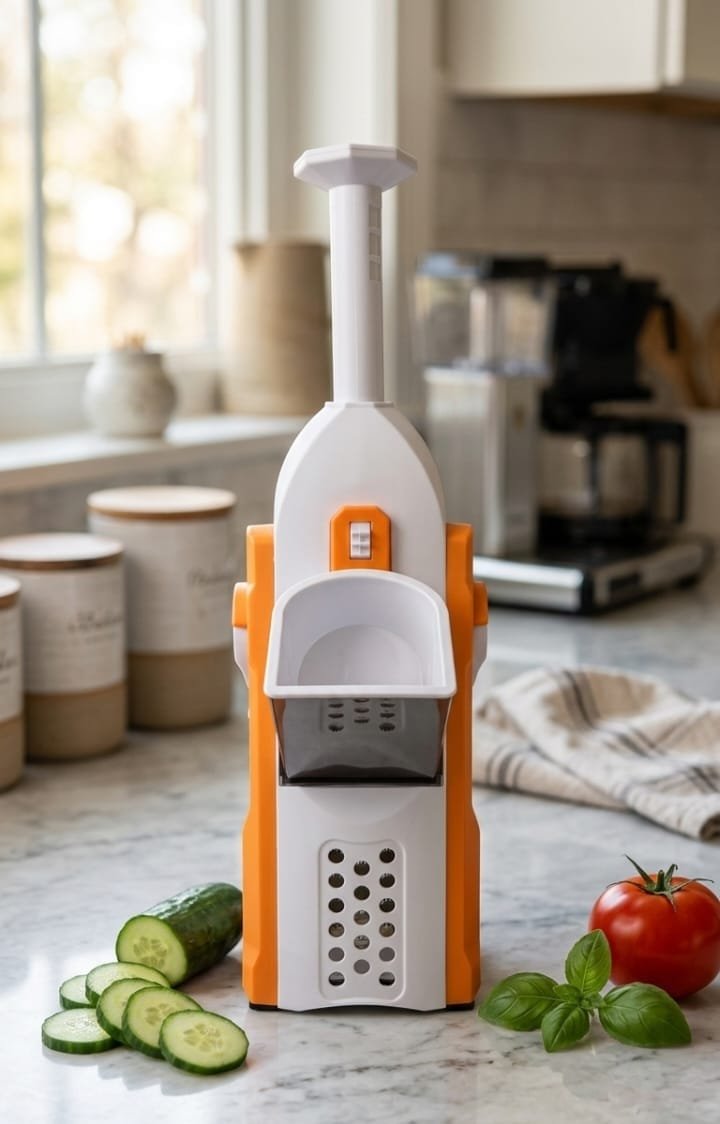 اجعلي تحضير الطعام أسهل وأكثر أماناً مع قطاعة الماندولين 5 في 1 المتعددة الاستخدامات. تتيح لكِ هذه القطاعة المبتكرة تقطيع، وبشر، وتقطيع الخضروات والفاكهة إلى شرائح أو أصابع بدقة احترافية دون أن تقترب يدكِ من الشفرات. تتميز بقاعدة ثابتة وتصميم مريح يقلل من الجهد والوقت في المطبخ. القطاعة مصنوعة من مواد عالية الجودة وشفرات ستانلس ستيل حادة ومقاومة للصدأ. متوفرة بألوان تناسب ديكور مطبخك: البرتقالي المبهج، الموف الأنيق، لون الكيوي المنعش، والأسود الكلاسيكي.