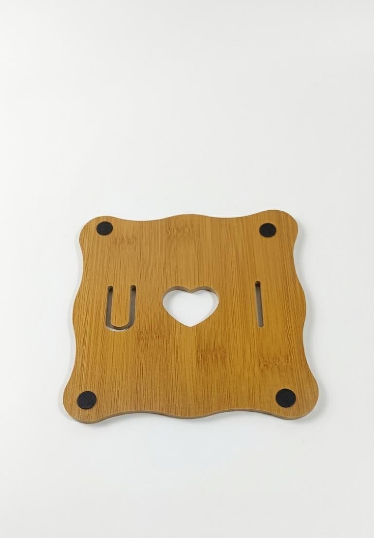 قاعدة أواني خشبية (بامبو) بتصميم رومانسي مبتكر “I ❤️ U”، مثالية لحماية الطاولات من الحرارة بلمسة عصرية تعبر عن الحب والاهتمام في تفاصيل مطبخك.