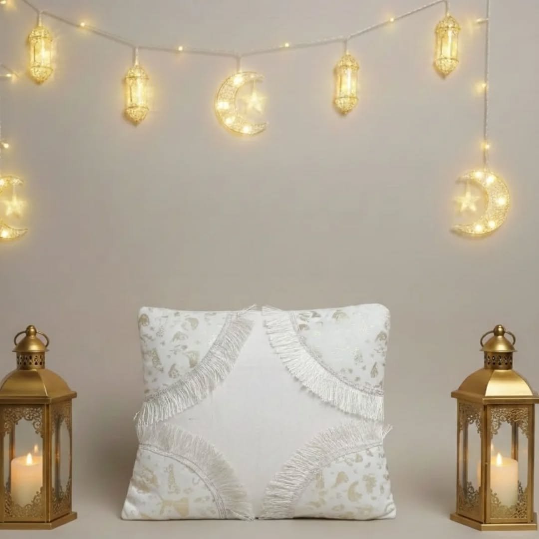 أضف لمسة من السحر والروحانية إلى منزلك مع كيس مخدة رمضان 2026. يتميز بتصاميم عصرية تجمع بين الخط العربي الفاخر والزخارف الإسلامية، مصنوع من قماش ناعم وعالي الجودة ليمنح غرفتك أجواءً رمضانية دافئة.
