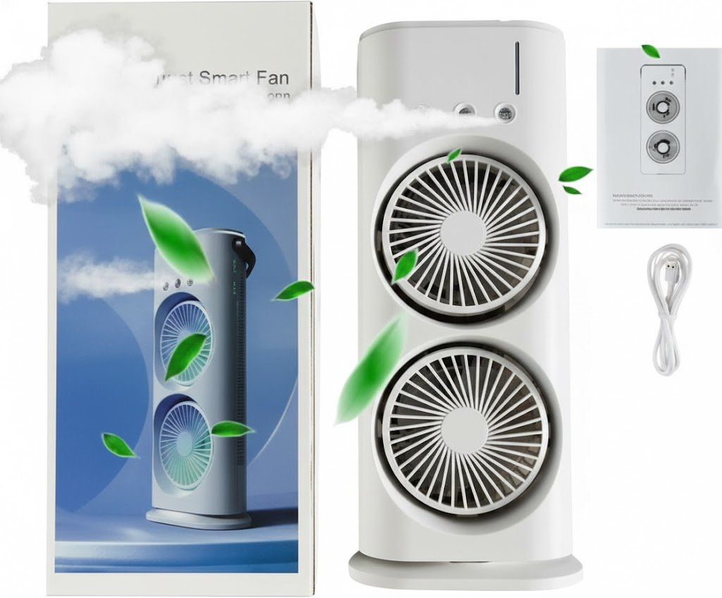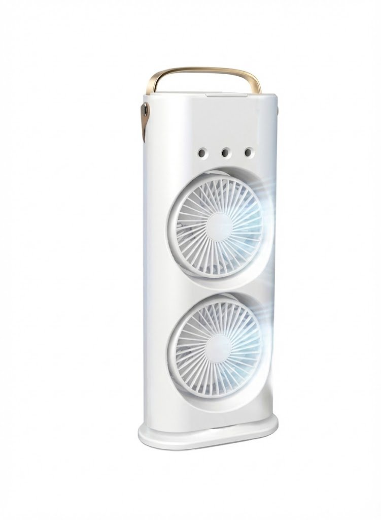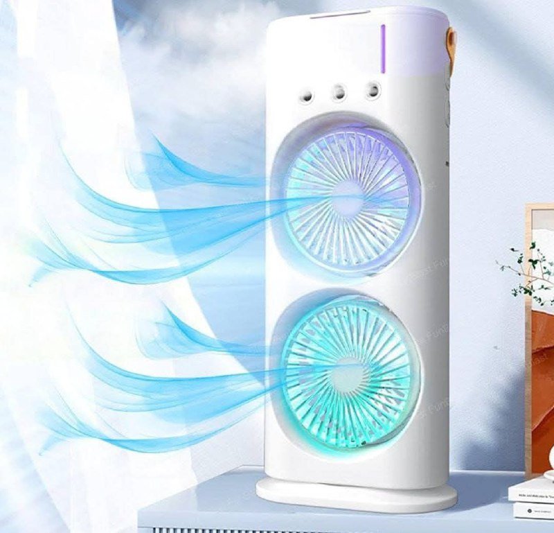 مروحة الرذاذ المزدوجة المحمولة: تبريد، إضاءة، وتعطير في جهاز واحد!