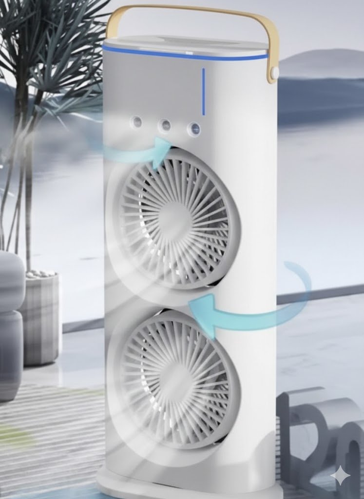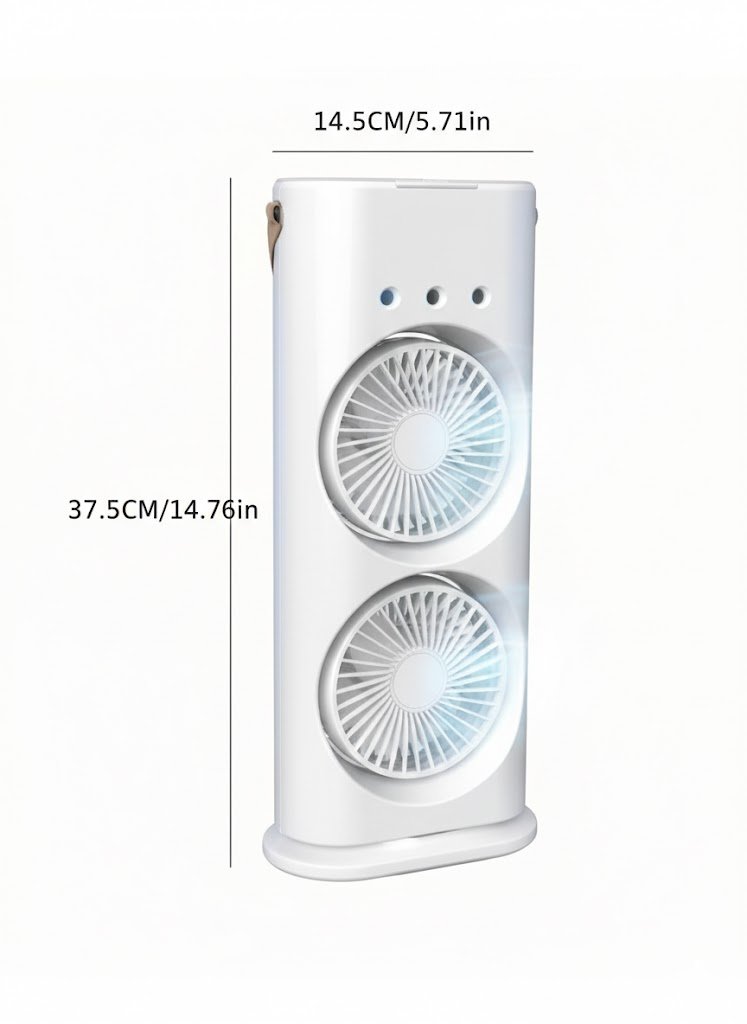 هذه المروحة العمودية المدمجة والخفيفة الوزن هي الحل الشامل للهروب من الحرارة والجو الجاف. بفضل تصميمها المزدوج ورأسها المتحرك وإمكانية الشحن عبر USB، توفر لك المرونة والراحة في أي مكان.
