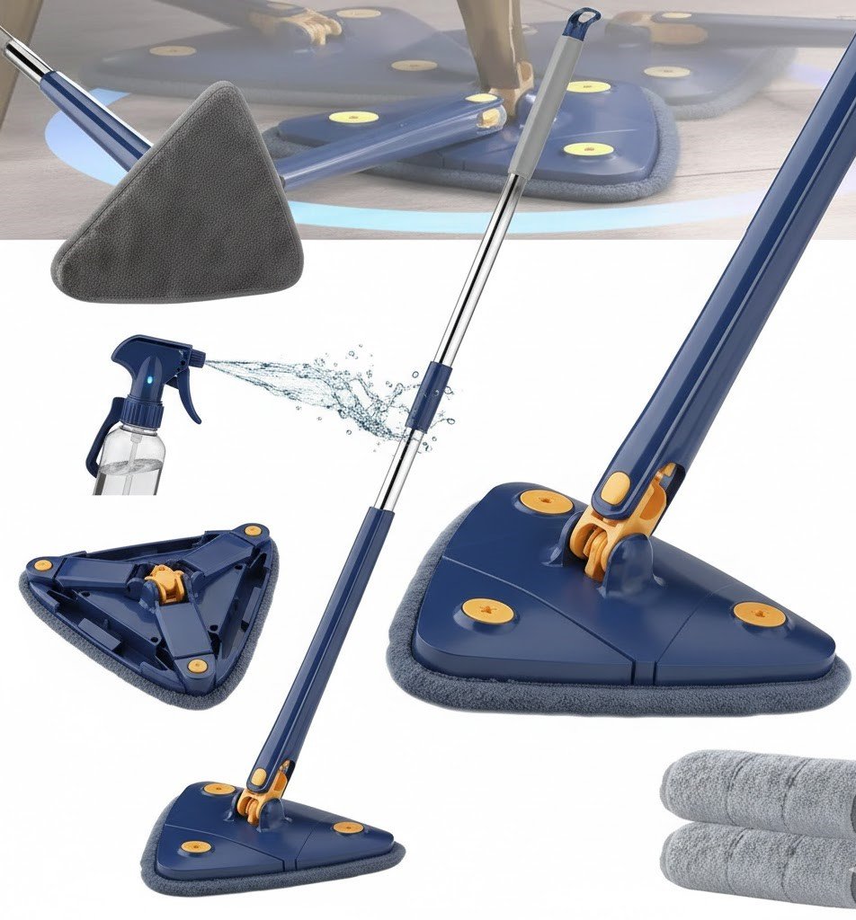 ممسحة تنظيف الأرضيات والأسقف المثلثة (دوران 360 درجة، غيار مايكروفايبر إضافي)