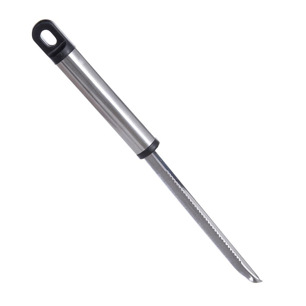 مقوار استانلس ستيل متعدد الاستخدامات بشفرة مسننة حادة، مثالي لتقوير الخضروات والفواكه بسهولة وسرعة، مع مقبض مريح لراحة اليد.